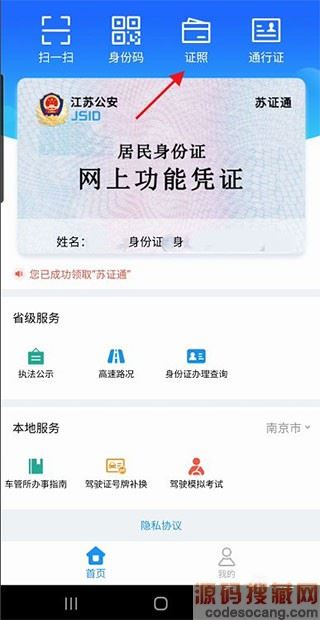 2、登录成功后,进入首页,找到上方的证照,点击进入