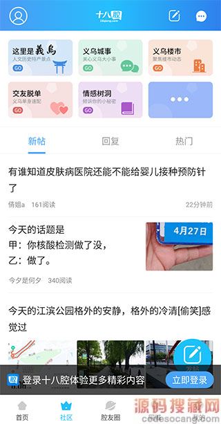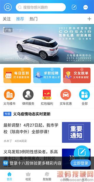 2、切换到【社区】页面,我们还能看到义乌城事、义乌楼市等小功能。