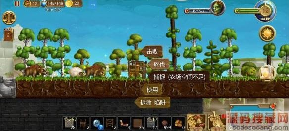有了陷阱,把它放在羊经常走来走去的地方(到不了可以使用传送魔法),等羊进去就会被抓住。就像图中的鸡一样,抓住了点击陷阱会出现捕捉,然后就会被送到农场养殖了。