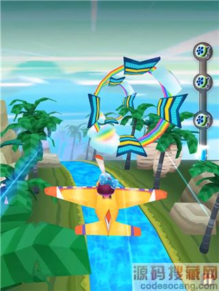 进入一飞冲天后,你将会驾驶小飞机飞行,同样是左右晃动手机使用重力感应来操控角色,钻过空中的加速圈,钻过一定圈圈后就可获得奖励。