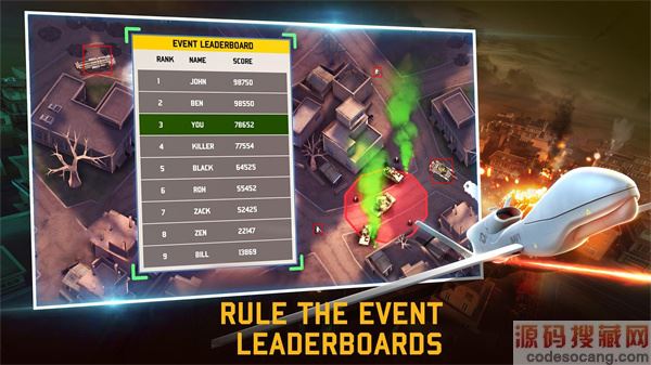 游戏射击操作十分畅爽刺激,赶快来这里体验一场高科技的战斗。在规定的时间内完成任务以得到高分评价。不同威力的武器可以自由切换,以对付不同的目标。中心的瞄准和红框自动锁定都非常有用,左下角的“FIRE”键与右边武器切换设计得相当合理,游戏拖动屏幕则可以转换视角,完全掌握敌人的动向,还有多种武器供你解锁。