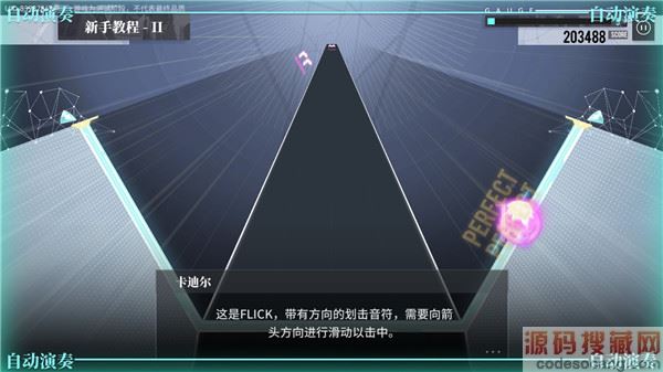 6、游戏中总共分为四种音乐,基础音符、快速、方向音符、长条音符,不同的音符击打方式也是不同的。