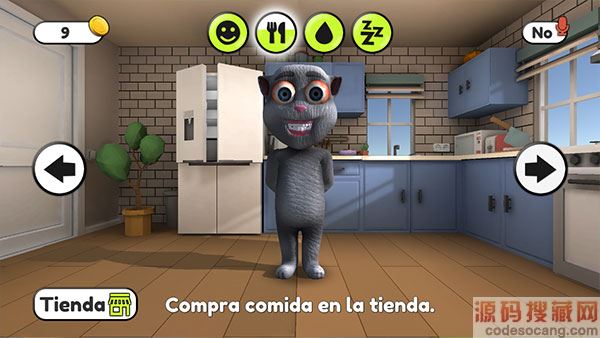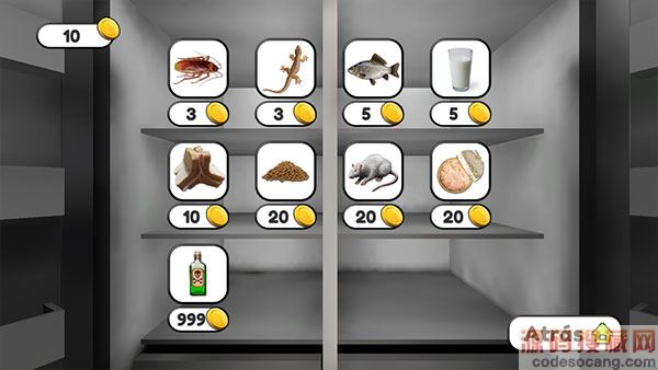 2、左右箭头可以切换房间内的任意场景,先去厨房,点击左下角的商店购物车按钮,进入冰箱内为胡安购买食物。