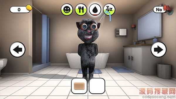 4、如果前往浴室,就可以为胡安洗澡淋雨,操作方法同喂食一样,拖动道具就可以了,洗完后清洁度也会提高。