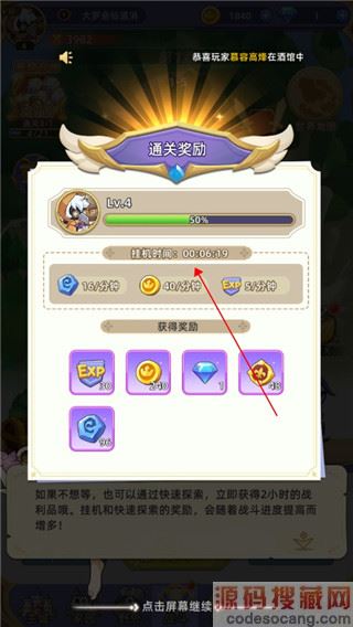 4、在主页中选择人物旁边的宝箱即可领取挂机奖励,时间越久奖励越高。