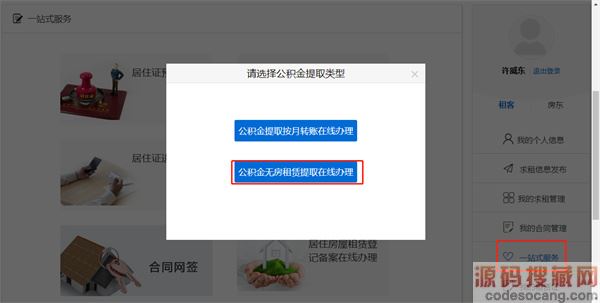 3、在个人用户中心点击【一站式服务】->【公积金提取在线办理】->【公积金无房租赁提取在线办理】。