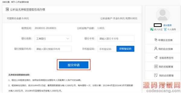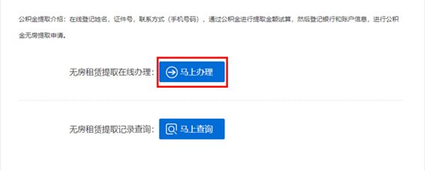 5、点击无房租赁提取在线办理:【马上办理】,进入公积金提取申请页面。