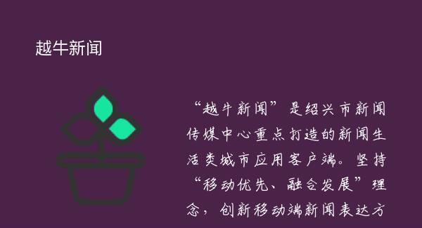 “越牛新闻”是绍兴市新闻传媒中心重点打造的新闻生活类城市应用客户端。坚持“移动优先、融合发展”理念,创新移动端新闻表达方式,为绍兴市民发布新资讯、策划各类报道,摄制精彩视频,提