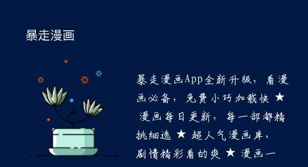 暴走漫画App全新升级,看漫画必备,免费小巧加载快 ★ 漫画每日更新,每一部都精挑细选 ★ 超人气漫画库,剧情精彩看的爽 ★ 漫画一览无余,简单快速易上手 ★ 全屏畅快阅读,操