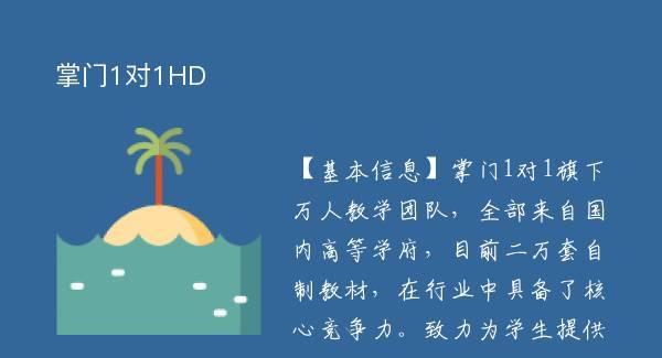 【基本信息】掌门1对1旗下万人教学团队,全部来自国内高等学府,目前二万套自制教材,在行业中具备了核心竞争力。致力为学生提供1对1在线定制教育,根据每个孩子不同的学习水平及习惯,