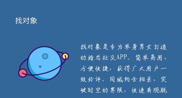 找对象是专为单身男女打造的婚恋社交APP。简单易用、方便快捷,获得广大用户一致好评。同城约会相亲,突破时空的界限,快速奔现脱单,找到真爱!【同城匹配】加好友,拉近缘分距离;【私