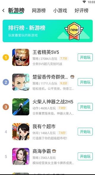 游戏每天更新,对战积分动作剧情,多种玩法类型应有尽有;玩家游戏集分享看法,关注好友,好友动态轻松掌握。