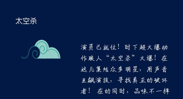 演员已就位!时下超火爆动作狼人“太空杀”火爆!在这儿集结众多明星,用声音互飙演技,寻找真正的破坏者! 在的同时,品味不一样的声音,对喜欢的人表白情书,组成CP开始热恋,分享精彩