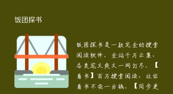 饭团探书是一款完全的搜索阅读软件。全站千万云集,各类宠文爽文一网打尽。【看书】百万搜索阅读,让你看书不花一分钱。【同步更新】跨站搜索热门,每日同步更新,保证让你看到的内容。【舒