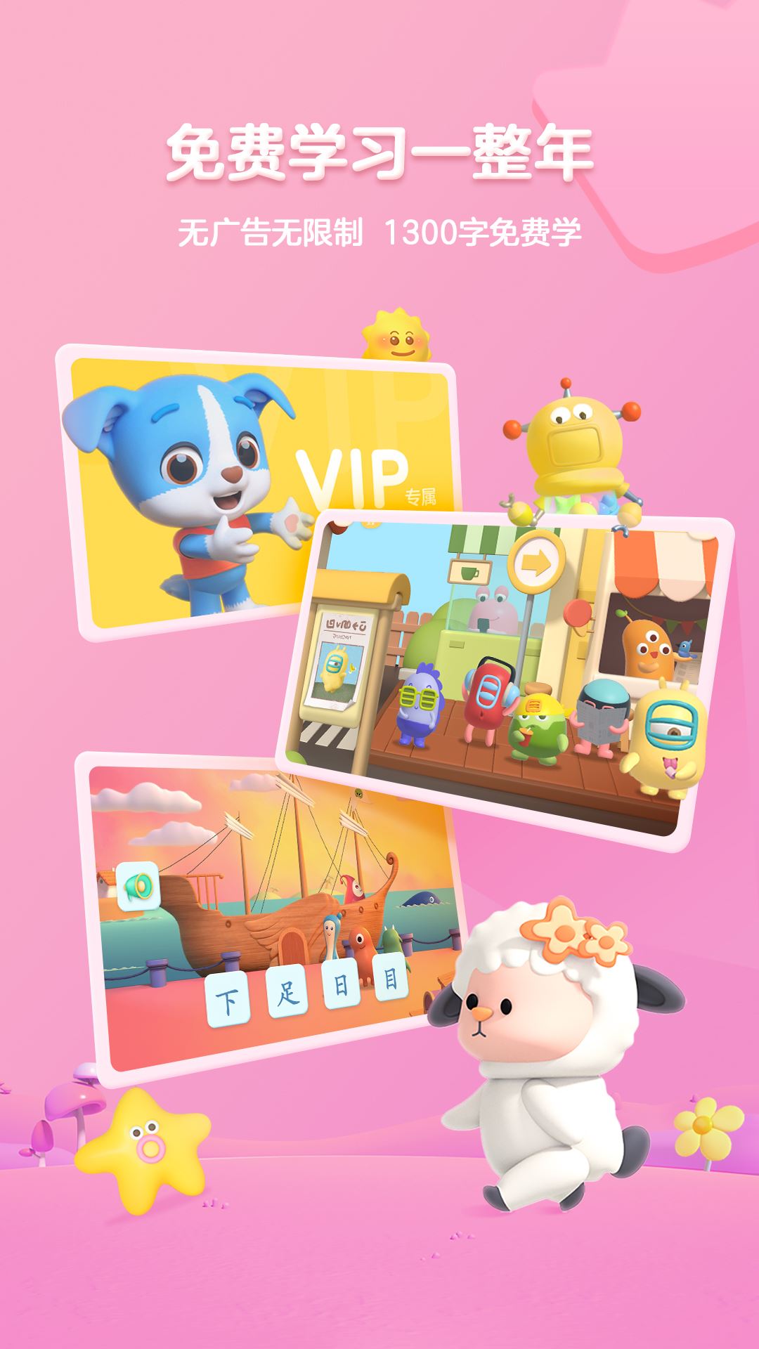 3、帮帮识字免费版APP精选1300字、5200词、1300句,覆盖小学低年级语文新课标,三段式课程设计,满足不同年龄段识字需求。