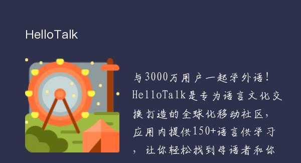与3000万用户一起学外语!HelloTalk是专为语言文化交换打造的全球化移动社区,应用内提供150+语言供学习,让你轻松找到母语者和你一起练口语学外语。应用内还能纠正语法错