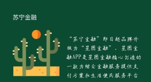“苏宁金融”即日起品牌升级为“星图金融”。星图金融APP是星图金融精心打造的一款为综合金融服务提供支付方案和生活便民服务平台;全面为持牌机构开展的理财、贷款、保险等多项金融服务