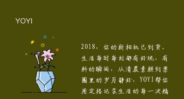 2018,你的新相机已到货。生活每时每刻都有好玩、有料的瞬间,从清晨素颜到票圈里的岁月静好,YOYI帮你用定格记录生活的每一次精彩。开发GG加班加点为你献上黑科技:【定格和拍照