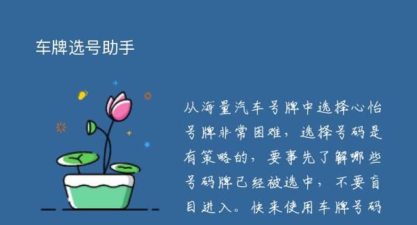 从海量汽车号牌中选择心怡号牌非常困难,选择号码是有策略的,要事先了解哪些号码牌已经被选中,不要盲目进入。快来使用车牌号码查询助手可以避免浪费自编机会,这里有12123同步交管放