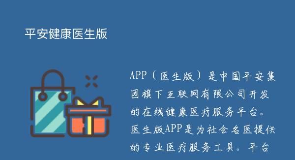 APP(医生版)是中国平安集团旗下互联网有限公司开发的在线健康医疗服务平台。医生版APP是为社会名医提供的专业医疗服务工具。平台社会名医均来自于知名医院,平台将为医生推送合适的
