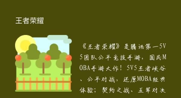 《王者荣耀》是腾讯第一5V5团队公平竞技手游,国民MOBA手游大作!5V5王者峡谷、公平对战,还原MOBA经典体验;契约之战、五军对决、边境突围等,带来花式作战乐趣!10秒实时