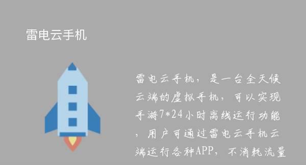 雷电云手机,是一台全天候云端的虚拟手机,可以实现手游7*24小时离线运行功能,用户可通过雷电云手机云端运行各种APP,不消耗流量和电量,稳定流畅不受网速影响。用雷电云手机玩游戏