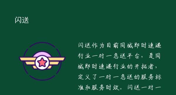 闪送作为目前同城即时速递行业一对一急送平台,是同城即时速递行业的开拓者,定义了一对一急送的服务标准和服务时效。闪送一对一的服务模式,明确闪送员从取件到送达全程一次只服务一个客户