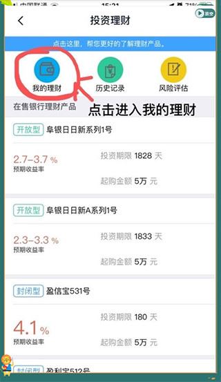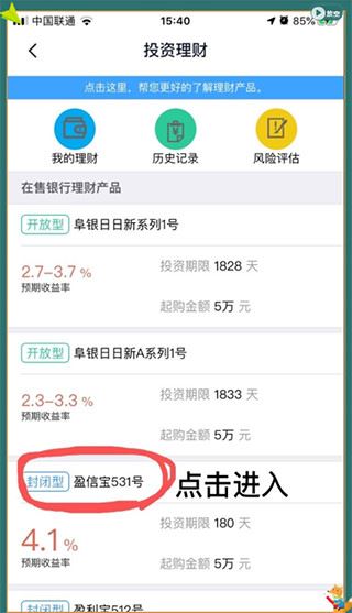 2、在【投资理财】页面内选择心仪的理财产品,点击进入。如:盈信宝531号。