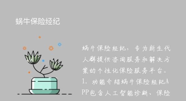 蜗牛保险经纪,专为新生代人群提供咨询服务和解决方案的个性化保险服务平台。1. 功能介绍蜗牛保险经纪APP包含人工智能诊断、保险分析对比、定制保障方案、预核保、理赔纠纷协助、保单