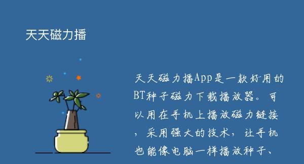 天天磁力播App是一款好用的BT种子磁力下载播放器。可以用在手机上播放磁力链接,采用强大的技术,让手机也能像电脑一样播放种子、磁力链接,可以实现在线观看种子磁力等类型的相关资源