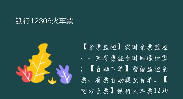【余票监控】实时余票监控,一旦有票就会时间通知您;【自动下单】智能监控余票,有票自动提交订单。【官方出票】铁行火车票12306官方出票,既可靠又安全。【在线选座】真实可靠,支持