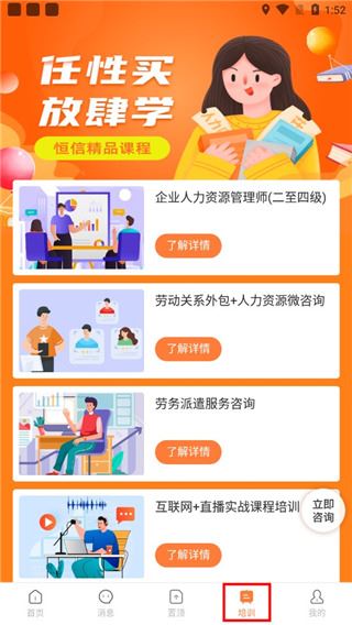 9、进入培训板块,这里是软件为大家提供的精品学习课程;