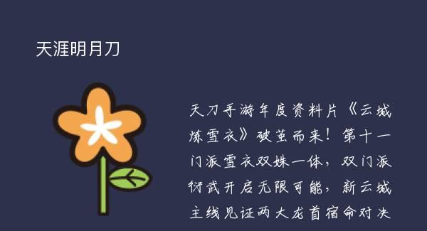 天刀手游年度资料片《云城炼雪衣》破茧而来!第十一门派雪衣双姝一体,双门派衍武开启无限可能,新云城主线见证两大龙首宿命对决,全新话本云城战迷魂,更有新奇遇、纸上谈兵S3、天涯战令