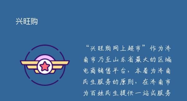“兴旺购网上超市”作为济南市乃至山东省最大的区域电商销售平台,本着为济南民生服务的原则,在济南市为百姓民生提供一站式服务,您只要从网上轻点鼠标,就可以体会短时间内送货上门的服务