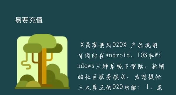 《易赛便民O2O》产品说明 可同时在Android、IOS和Windows三种系统下登陆,新增的社区服务模式,为您提供三大真正的O2O功能: 1、发展属于您自己的移动互联网用户