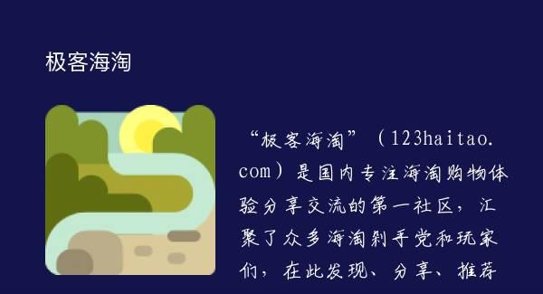 “极客海淘”(123haitao.com)是国内专注海淘购物体验分享交流的第一社区,汇聚了众多海淘剁手党和玩家们,在此发现、分享、推荐自己的海外电商购物的经验和优品、折扣信息。