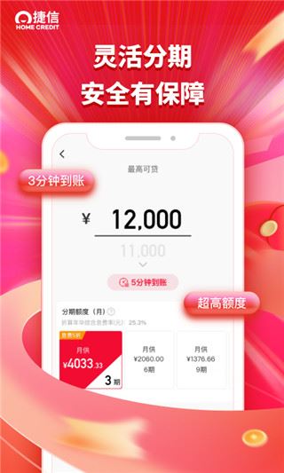 3、捷信惠购:一次可申请多达1000循环额度,先消费,后还款,不用不收费;支持支付、、银联二维码等主流支付工具,实现多场景消费,更有返现享不停