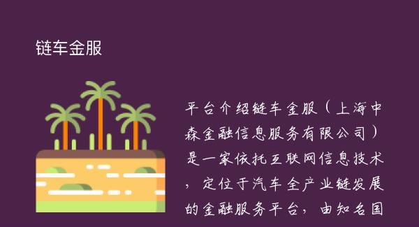平台介绍链车金服(上海中森金融信息服务有限公司)是一家依托互联网信息技术,定位于汽车全产业链发展的金融服务平台,由知名国企光大国际建设集团的全资子公司发起并控股成立,注册资本人