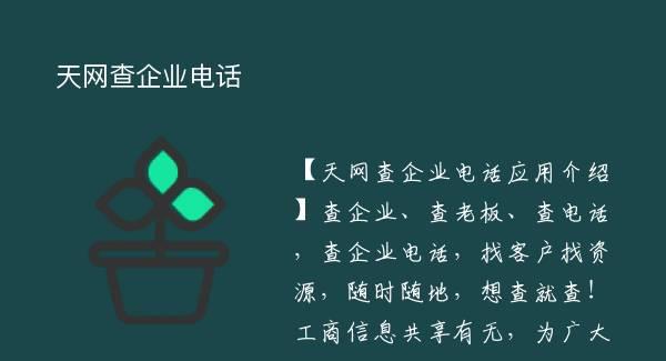 【天网查企业电话应用介绍】查企业、查老板、查电话,查企业电话,找客户找资源,随时随地,想查就查!工商信息共享有无,为广大中小企业提供准客户信息、老板信息等一站式服务;天网查主要
