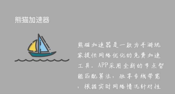 熊猫加速器是一款为手游玩家提供网络优化的免费加速工具。APP采用全新的节点智能匹配算法,独享专线带宽,根据实时网络情况针对性加速,能有效解决游戏中遇到的延迟高、易掉线、加载慢、