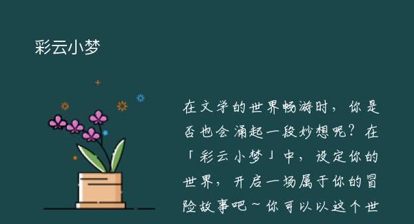在文学的世界畅游时,你是否也会涌起一段妙想呢?在「彩云小梦」中,设定你的世界,开启一场属于你的冒险故事吧~你可以以这个世界设定开启故事,也可以与世界中的人物对话。「世界设定案例