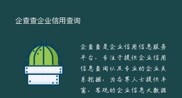 企查查是企业信用信息服务平台,专注于提供企业信用信息查询以及专业的企业关系挖掘,为各界人士提供丰富、客观的企业信息大数据。-产品优势-【专注企业大数据】:企查查汇集了目前国内市