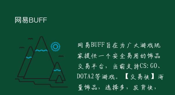 网易BUFF旨在为广大游戏玩家提供一个安全易用的饰品交易平台,当前支持CS:GO、DOTA2等游戏。【交易快】海量饰品,选择多,发货快,交易秒到账。【安全可靠】库存上架,边玩边