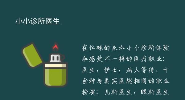 在忙碌的米加小小诊所体验和感受不一样的医疗职业:医生,护士,病人等待。十余种与真实医院相同的职业扮演:儿科医生,眼科医生,急诊医生等待,还有护工,餐厅老板,甚至是清洁员!探索多
