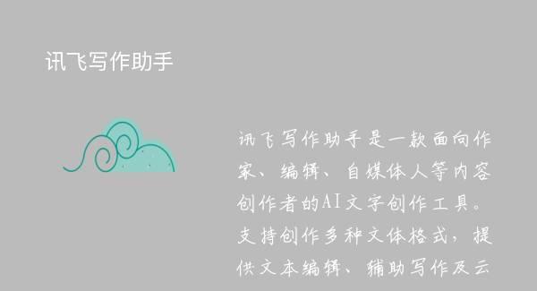 讯飞写作助手是一款面向作家、编辑、自媒体人等内容创作者的AI文字创作工具。支持创作多种文体格式,提供文本编辑、辅助写作及云端存储服务。【云端同步】作品数据同步云端,随时随地可在