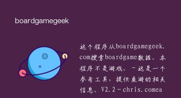 这个程序从boardgamegeek.com搜索boardgame数据。本程序不是游戏。 - 这是一个参考工具,提供桌游的相关信息。V2.2 - chris.comeaux修复