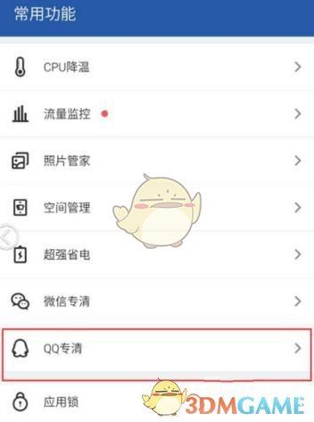 3.进入常用功能后,我们在软件缓存里就能看到QQ的图标,点击“QQ专清”;