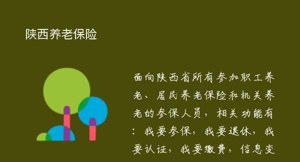 面向陕西省所有参加职工养老、居民养老保险和机关养老的参保人员,相关功能有:我要参保,我要退休,我要认证,我要缴费,信息变更,我要证明,我要查询等功能,让参保人方便快捷的办理业务