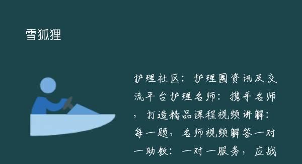 护理社区:护理圈资讯及交流平台护理名师:携手名师,打造精品课程视频讲解:每一题,名师视频解答一对一助教:一对一服务,应战护考海量题库:电脑网页版、手机APP、微信版人机对话:模