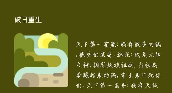 天下第一富豪:我有很多的钱,很多的装备.林昆:我是太阳之神,拥有妖族祖庭,当初我爹藏起来的钱,拿出来吓死你们.天下第一高手:我有天级功法,修成之后可以破武成仙!林昆:我修炼的《